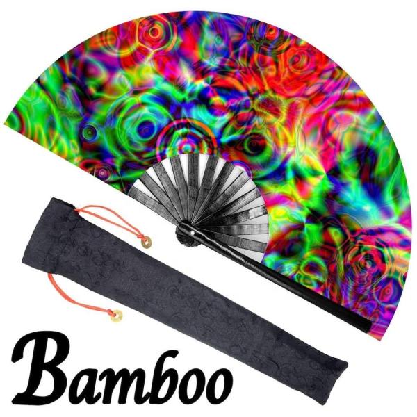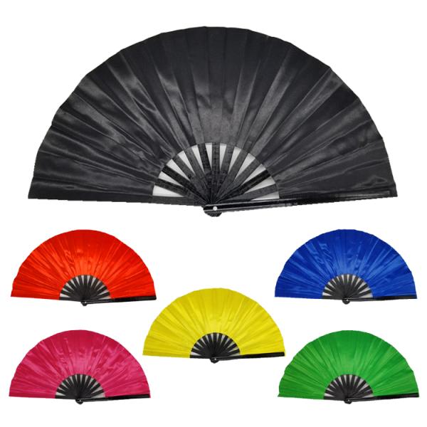 Bamboo Fabric Printing Logo Customized Hand Fan Foldable Large Big Size 33cm Images |