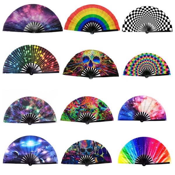 Customized New Design Promotional Large Big Size 33cm Bamboo Fabric Printing Logo Foldable Hand Fan